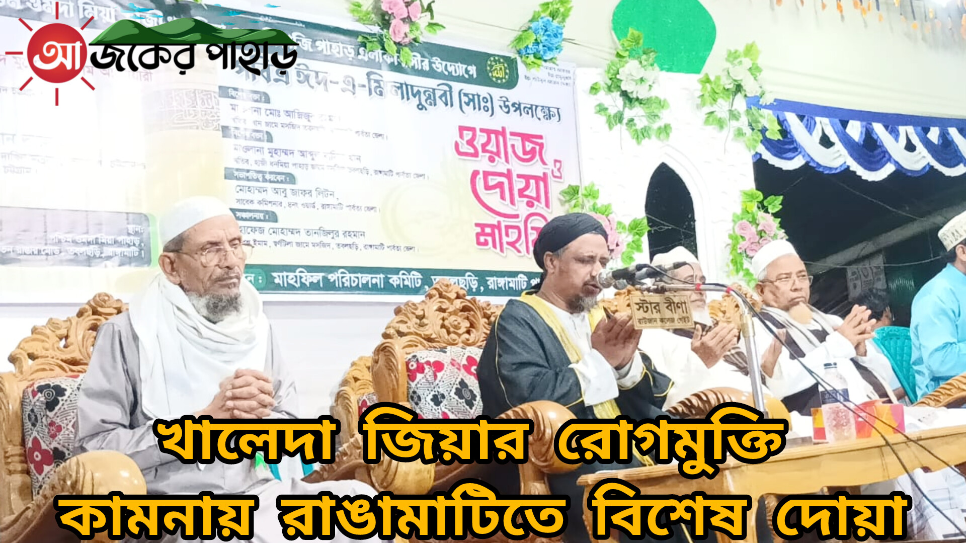 বৃহস্পতিবার (৪ ডিসেম্বর) রাতে রাঙ্গামাটি পৌর এলাকার হাজী ধনমিয়া পাহাড়, পশ্চিম ওমদা মিয়া এবং মিয়াজি পাহাড় এলাকাবাসীর যৌথ উদ্যোগে আয়োজিত পবিত্র ঈদে মিলাদুন নবী সাল্লাল্লাহু আলাইহি ওয়া সাল্লাম উপলক্ষে আয়োজিত দোয়া মাহফিলে বেগম খালেদা জিয়ার আশু রোগমুক্তি এবং দেশের শান্তি সমৃদ্ধি কামনা করে বিশেষ মোনাজাত করা হয়।