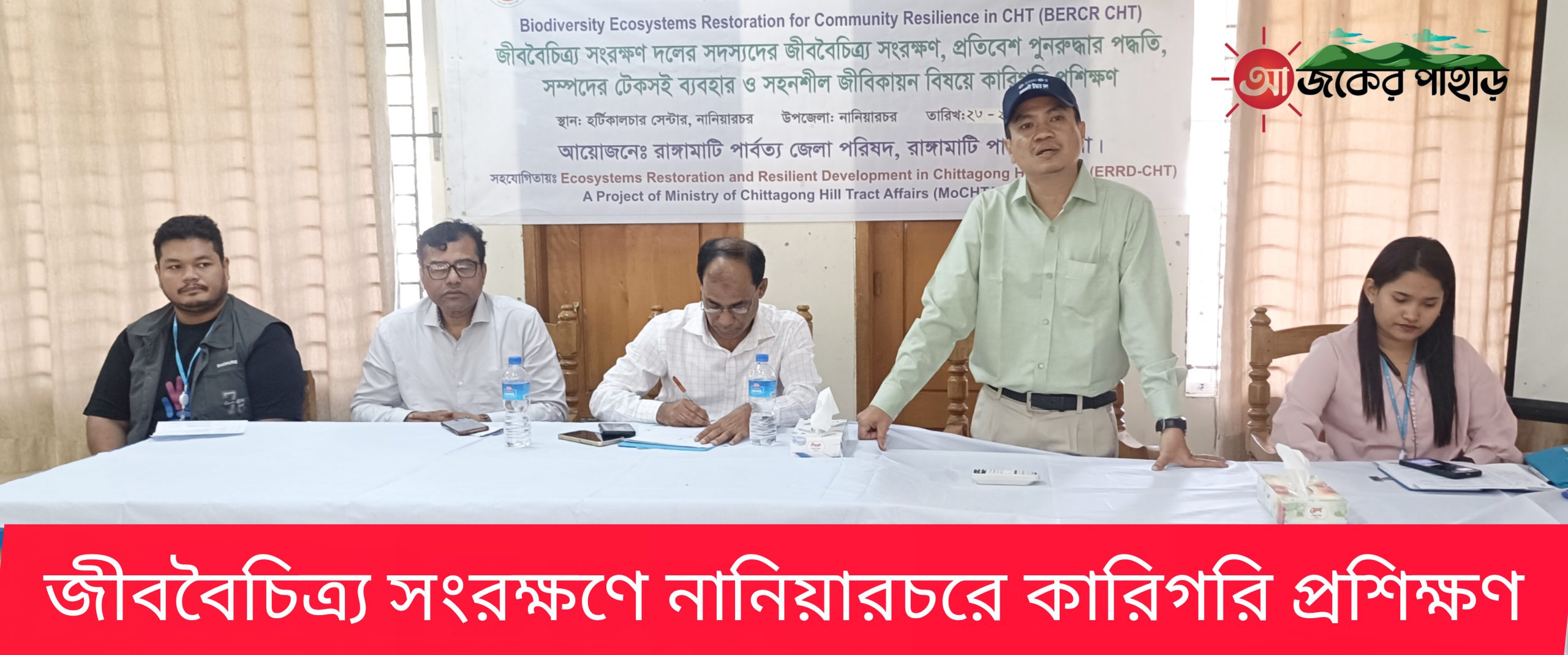 গ্লোবাল এফেয়ার্স কানাডার অর্থায়নে, পার্বত্য চট্টগ্রাম মন্ত্রণালয় ও ইউএনডিপি’র সহযোগিতায় এবং বায়োডাইভারসিটি ইকোসিস্টেম রেস্টোরেশন ফর কমিউনিটি রিজিলিয়েন্স ইন সিএইচটি (বিইআরসিআর সিএইচটি) প্রকল্পের আওতায় নানিয়ারচরে জীববৈচিত্র্য সংরক্ষণ দলের সদস্যদের জীববৈচিত্র্য সংরক্ষণ, প্রতিবেশ পুনরুদ্ধার পদ্ধতি, সম্পদের টেকসই ব্যবহার ও সহনশীল জীবিকায়ন বিষয়ে কারিগরি প্রশিক্ষণ অনুষ্ঠিত হয়েছে।