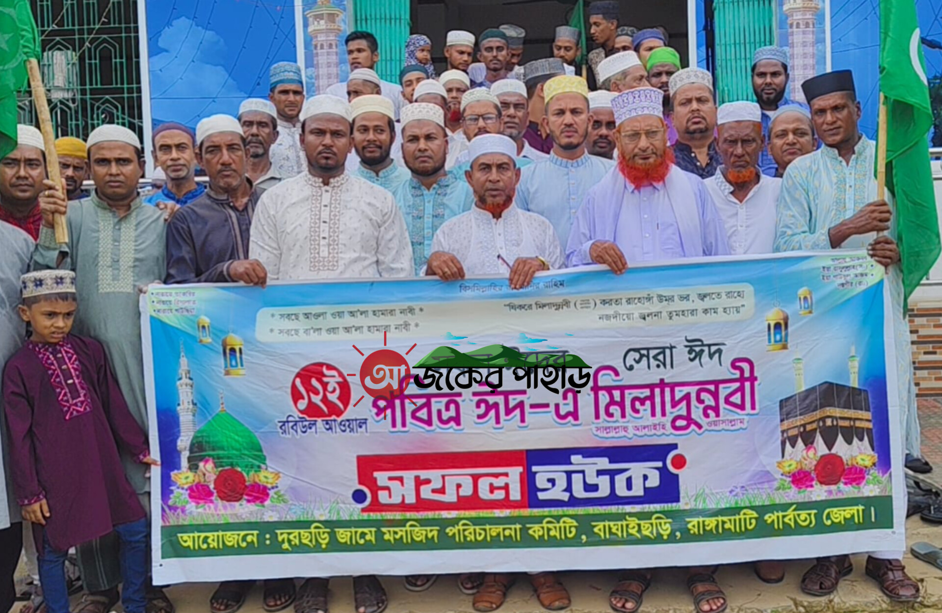 বাঘাইছড়ি উপজেলার ৩১নং খেদারমারা ইউনিয়নের দুরছড়িতে পবিত্র ঈদে মিলাদুন্নবী (সা.) উদযাপন উপলক্ষে বর্ণাঢ্য জসনে জুলুছে ও আলোচনা সভা অনুষ্ঠিত হয়েছে।