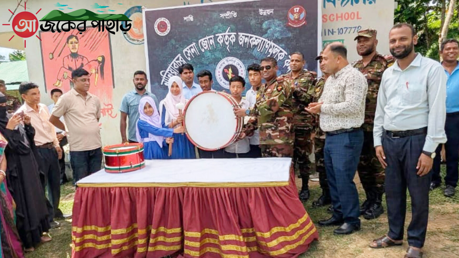 মঙ্গলবার (২৩ সেপ্টেম্বর) সকালে নানিয়ারচর জোনের আওতাধীন বুড়িঘাট ইউনিয়নের বগাছড়ি আল-আমিন উচ্চ বিদ্যালয়ের শিক্ষার্থীদের মানসিক বিকাশ ও অগ্রগতির জন্য ১টি বিগ ড্রাম, ১টি বিট ড্রাম এবং ১টি ফুটবল বিতরণ করেন, নানিয়ারচর জোন কমান্ডার লেঃ কর্নেল মশিউর রহমান (পিএসসি)।