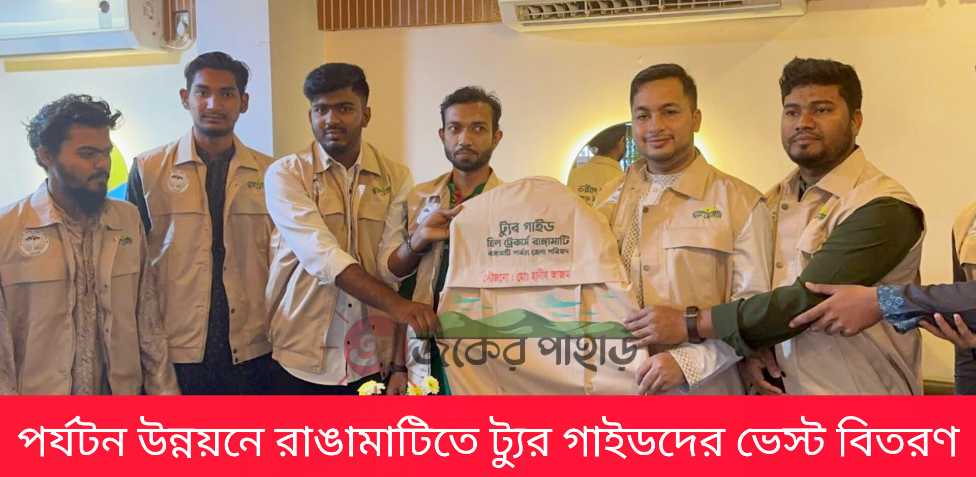 বৃহস্পতিবার (১২ মার্চ) বিকেলে শহরের রিজার্ভ বাজার রয়েল ডাইন রেস্টুরেন্টে আয়োজিত এক ইফতার মাহফিল অনুষ্ঠানে রাঙামাটি পার্বত্য জেলা পরিষদের সদস্য ও পর্যটন বিষয়ক আহ্বায়ক মো. হাবীব আজম এর পক্ষ থেকে ট্যুর অপারেটর হিল ট্রেকার্স রাঙামাটি-এর সদস্যদের হাতে এই ট্যুর গাইড ভেস্ট তুলে দেওয়া হয়।