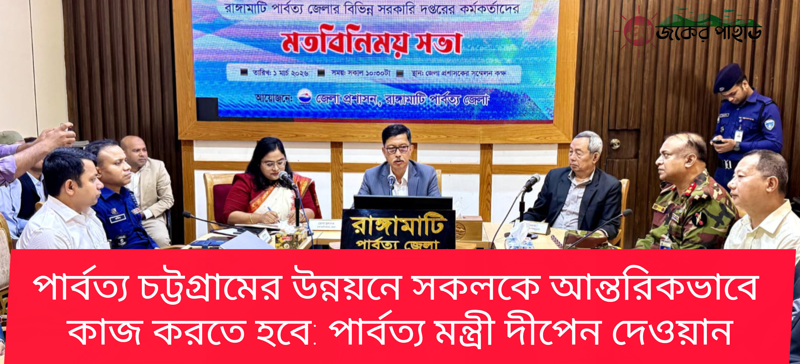পার্বত্য চট্টগ্রাম বিষয়ক মন্ত্রী দীপেন দেওয়ান বলেছেন, পার্বত্য চট্টগ্রামের উন্নয়ন ও সাম্প্রদায়িক সম্প্রীতি রক্ষায় সকল প্রতিষ্ঠানকে আন্তরিকভাবে কাজ করতে হবে। তিনি আরও বলেন, বর্তমান গণতান্ত্রিক সরকার পার্বত্য অঞ্চলের উন্নয়নে কোনো ধরনের বৈষম্য সৃষ্টির সুযোগ দিবে না।