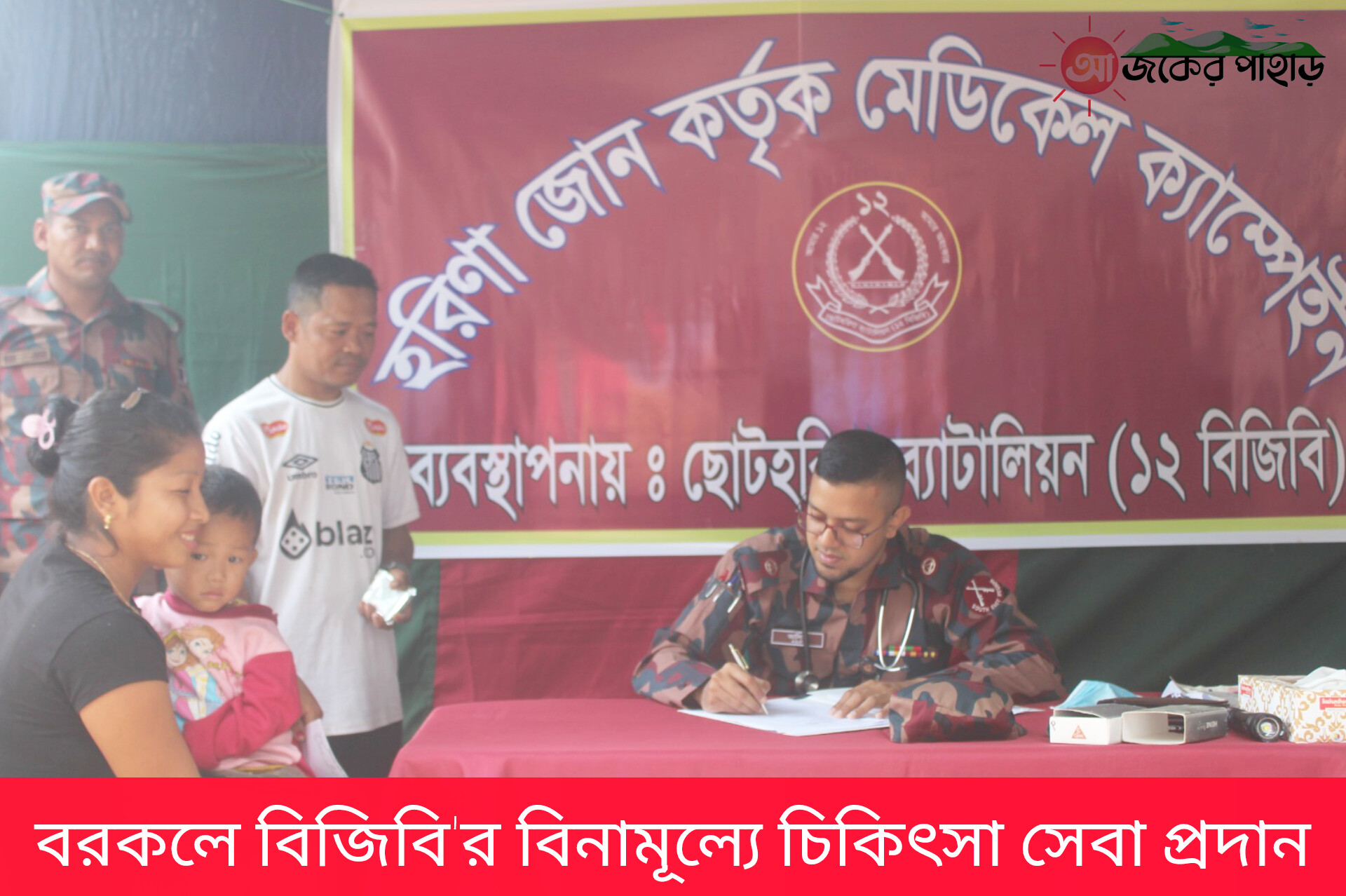 বরকল ছোট হরিণা ১২ বিজিবি জোনের উদ্যোগে “সম্প্রীতি ও উন্নয়ন” কার্যক্রমের আওতায অসহায় রোগীদের মাঝে বিনামূল্যে স্বাস্থ্যসেবা ও ঔষধ বিতরণ করা হয়েছে।