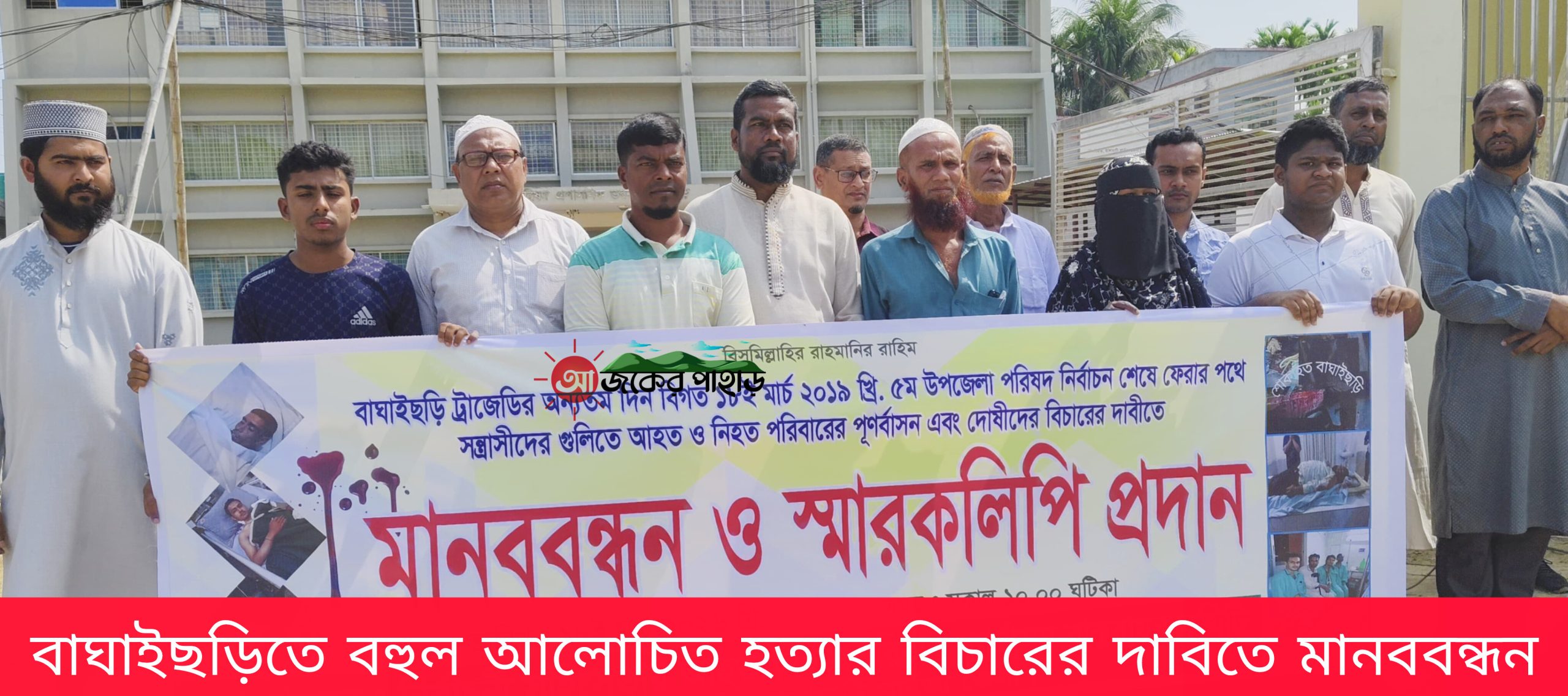বাঘাইছড়িতে বহুল আলোচিত হত্যার বিচারের দাবিতে মানববন্ধন