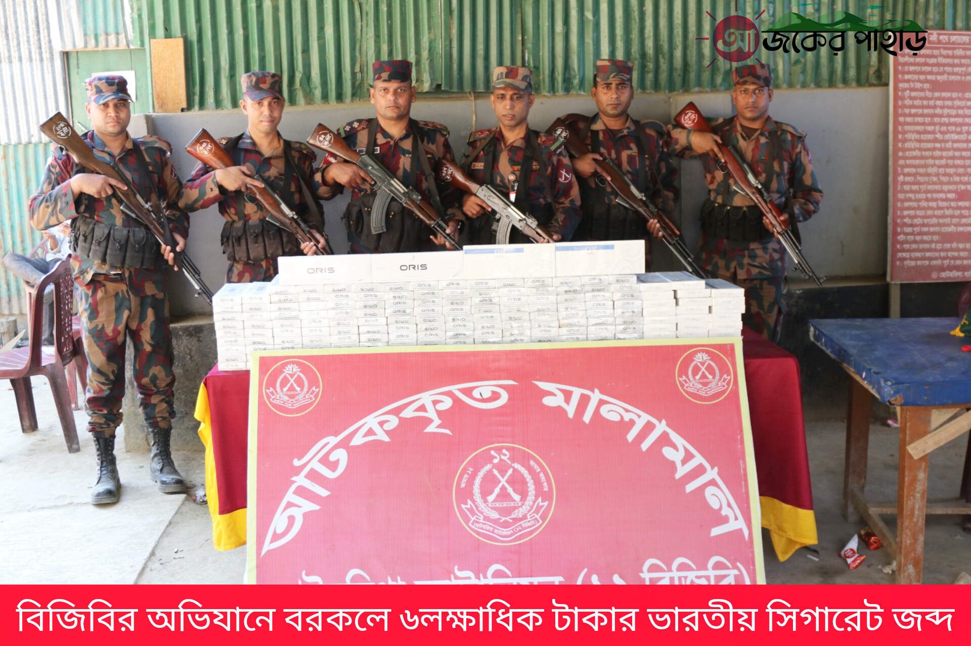 বরকলে বিপুল পরিমাণ অবৈধ ভারতীয় সিগারেট আটক করেছে ১২বিজিবি ছোট হরিনা জোন।