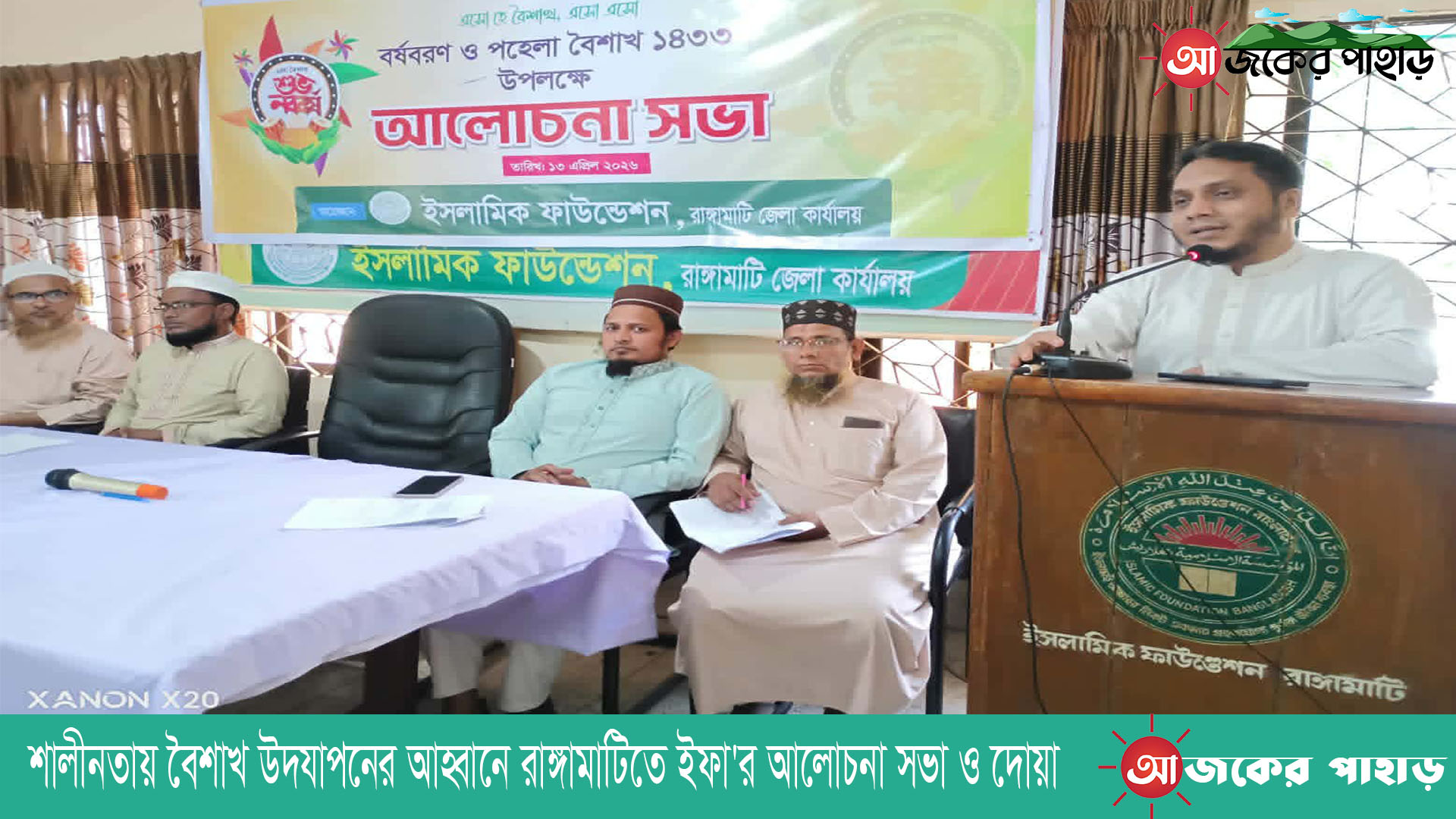 ‘এসো হে বৈশাখ, এসো এসো’ স্লোগানকে সামনে রেখে বর্ষবরণ ও পহেলা বৈশাখ ১৪৩৩ বঙ্গাব্দ উদযাপন উপলক্ষে রাঙ্গামাটিতে ইসলামিক ফাউন্ডেশনের উদ্যোগে এক আলোচনা সভা ও দোয়া মাহফিল অনুষ্ঠিত হয়েছে। অনুষ্ঠানে বক্তারা বাংলা নববর্ষ উদযাপনে ইসলামী সংস্কৃতি ও মূল্যবোধকে ধারণ করার উপর গুরুত্বারোপ করেন।