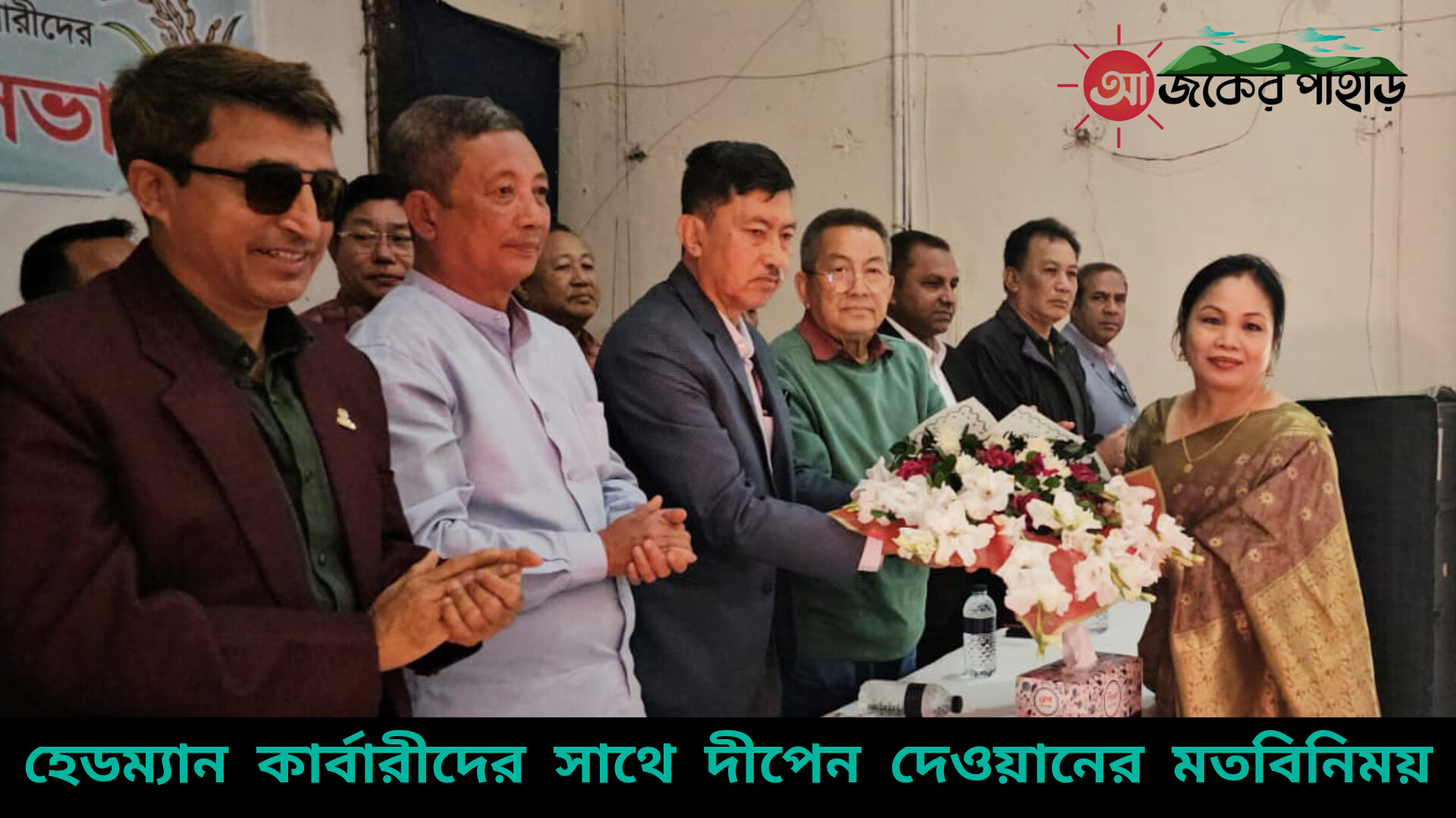 সিএইচটি হেডম্যান নেটওয়ার্ক এর সাধারণ সম্পাদক শান্তিময় চাকমা বলেন “রাঙামাটির ইতিহাসে এই প্রথম কোন জাতীয় রাজনৈতিক দল আমাদের সাথে মতবিনিময় সভা আয়োজন করলো। এজন্য আন্তরিক ভাবে ধন্যবাদ জানাই দীপেন দেওয়ানকে। আমাদের এই প্রথাগত প্রতিষ্ঠানকে ধ্বংশ করার নানান চক্রান্ত হচ্ছে, হয়তো ধ্বংশ করতে পারবে না কিন্তু স্বকীয়তা হারাবে। আজকের প্রধান অতিথি দীপেন দেওয়ানের প্রতি অনুরোধ থাকবে আমাদের এই প্রথাগত প্রতিষ্ঠানকে রক্ষা করার জন্য যথোপযুক্ত পদক্ষেপ গ্রহন করবেন।”